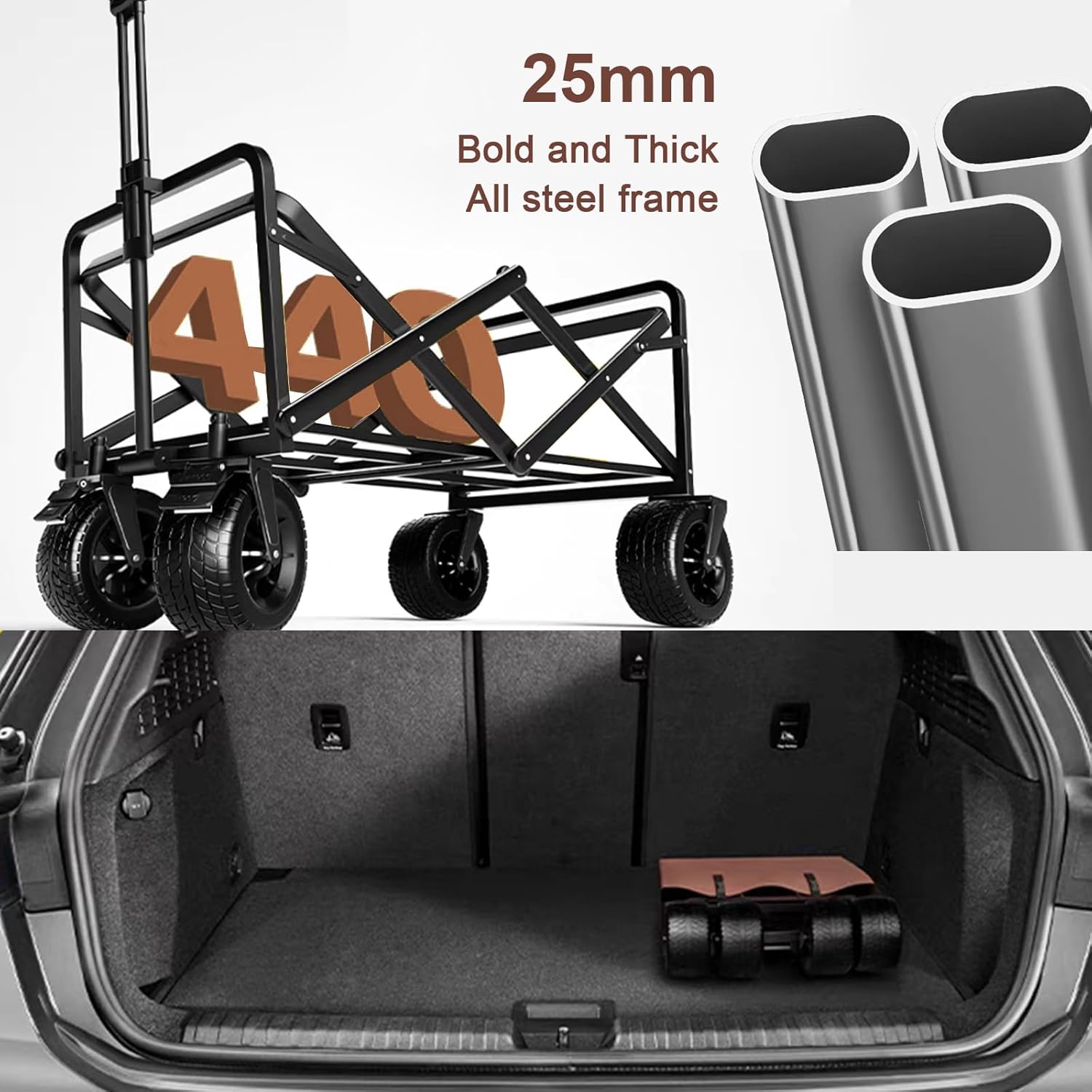 Collapsible Foldable Wagon Cart – Heavy Duty All-Terrain Trolley with 360° Wheels & Adjustable Handle – 200kg Capacity | Letz Kart® - Coffee Color